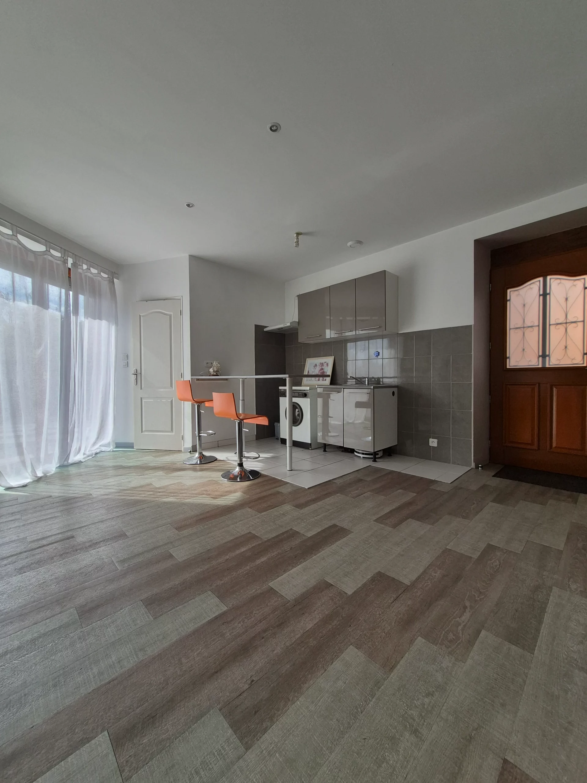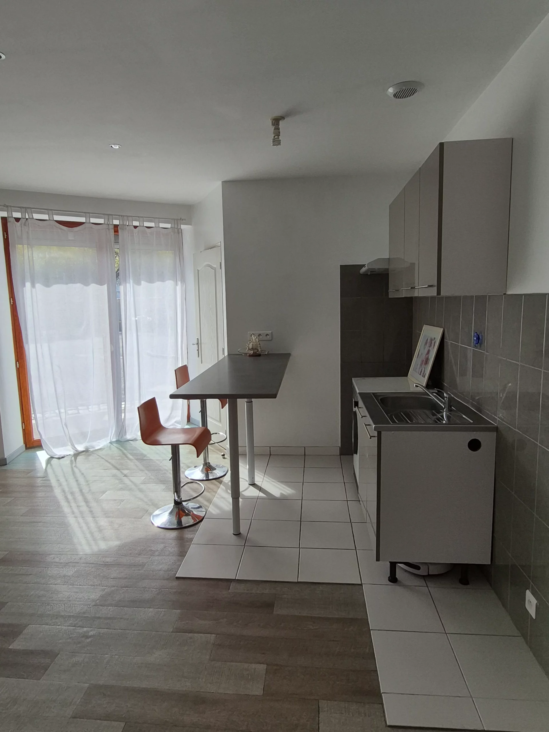 La pièce de vie de 25 m² associe confort et convivialité avec sa cuisine ouverte sur le salon-séjour, tandis que la chambre de 12 m² est dotée d’un placard intégré, alliant praticité et espace de rangement.