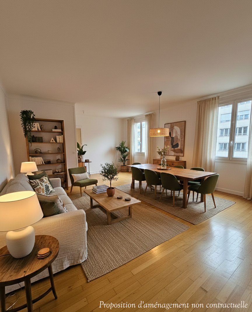 Sa configuration permet de créer très facilement une 3ème chambre sans réduire la convivialité des espaces de vie.